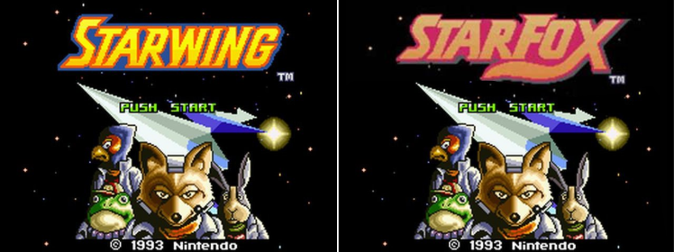 - Star Fox → Starwing / Lylat Wars (US → Europe)